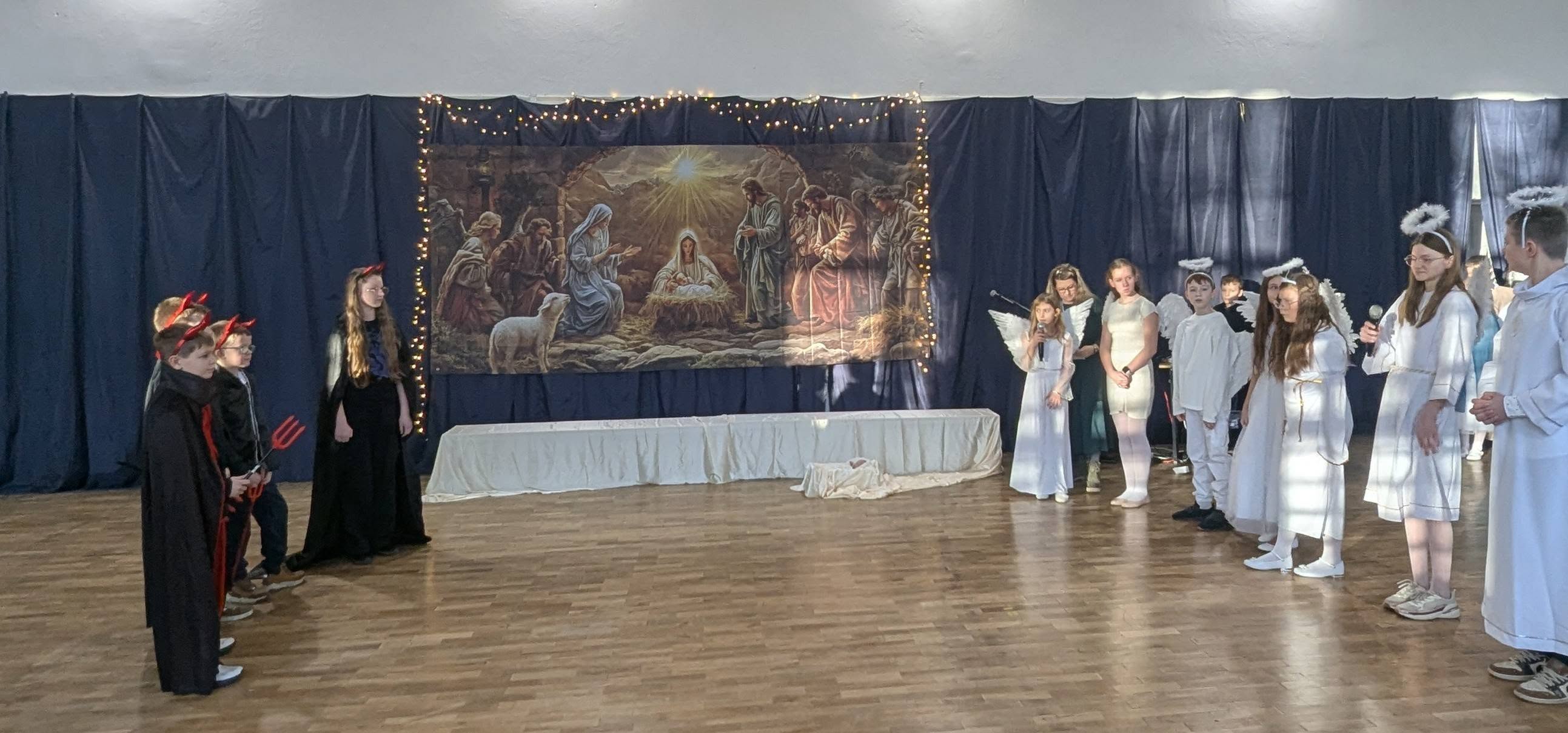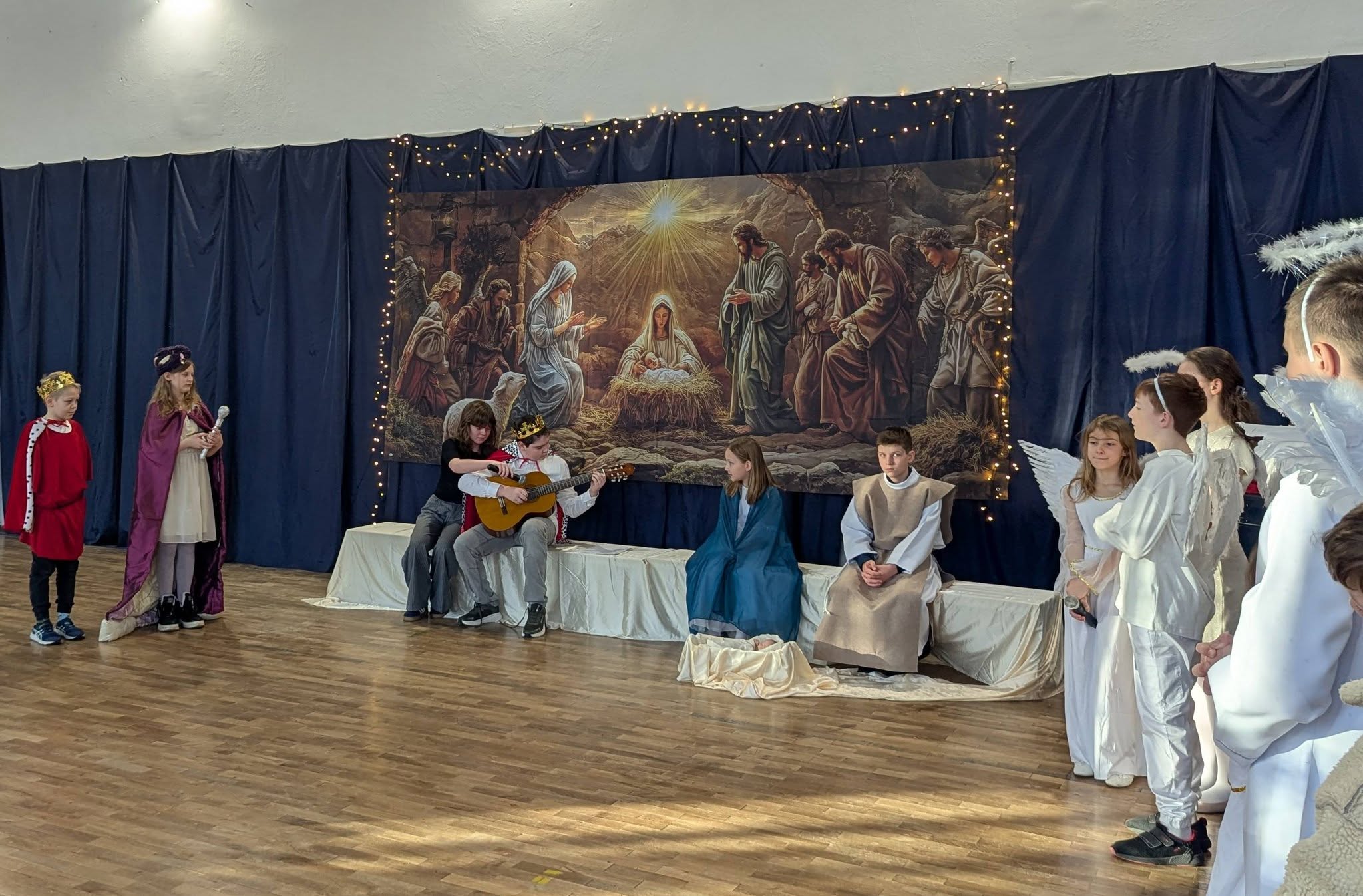 Prawdziwa magia Świąt zagościła w naszej szkole! Uczniowie klasy IV i V pod opieką Pani Ani Lewandowskiej z wielkim zaangażowaniem przedstawili historię Bożego Narodzenia podczas tegorocznych Jasełek. Nie zabrakło pięknych kolęd, aniołów, pasterzy, diabłów i królów.
